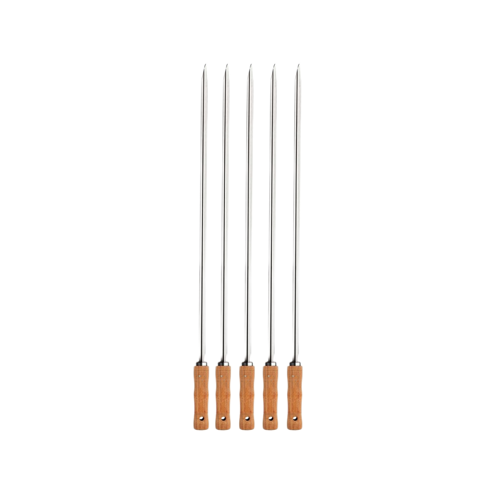 Dankzij het doordachte ontwerp plaats je de spiesen makkelijk in houder en roteer je de spiesen eenvoudig voor een gelijkmatige garing. De spiezen zijn gemaakt van hoogwaardig roestvrij staal en houten handvat en staan garant voor jarenlang braaiplezier.
